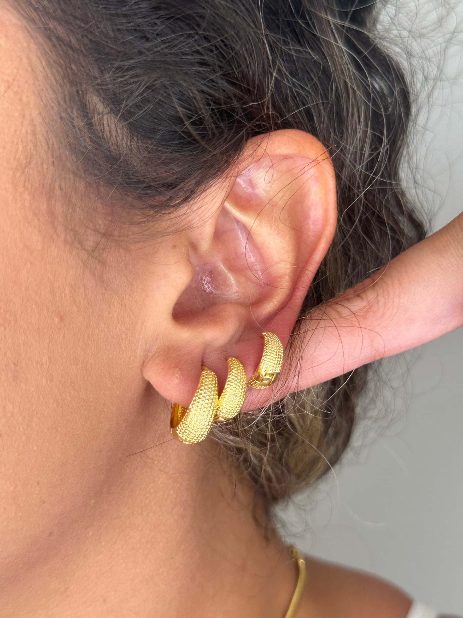Descubra o charme discreto do Trio de Argolas folheadas Ju, uma escolha elegante para o seu dia a dia. Com detalhes em relevo que imitam o brilho de cravejados, essas argolas folheadas adicionam um toque sutil de sofisticação a cada momento. Perfeitas para acompanhar você em todas as ocasiões, oferecem estilo sem esforço com um toque de glamour discreto
